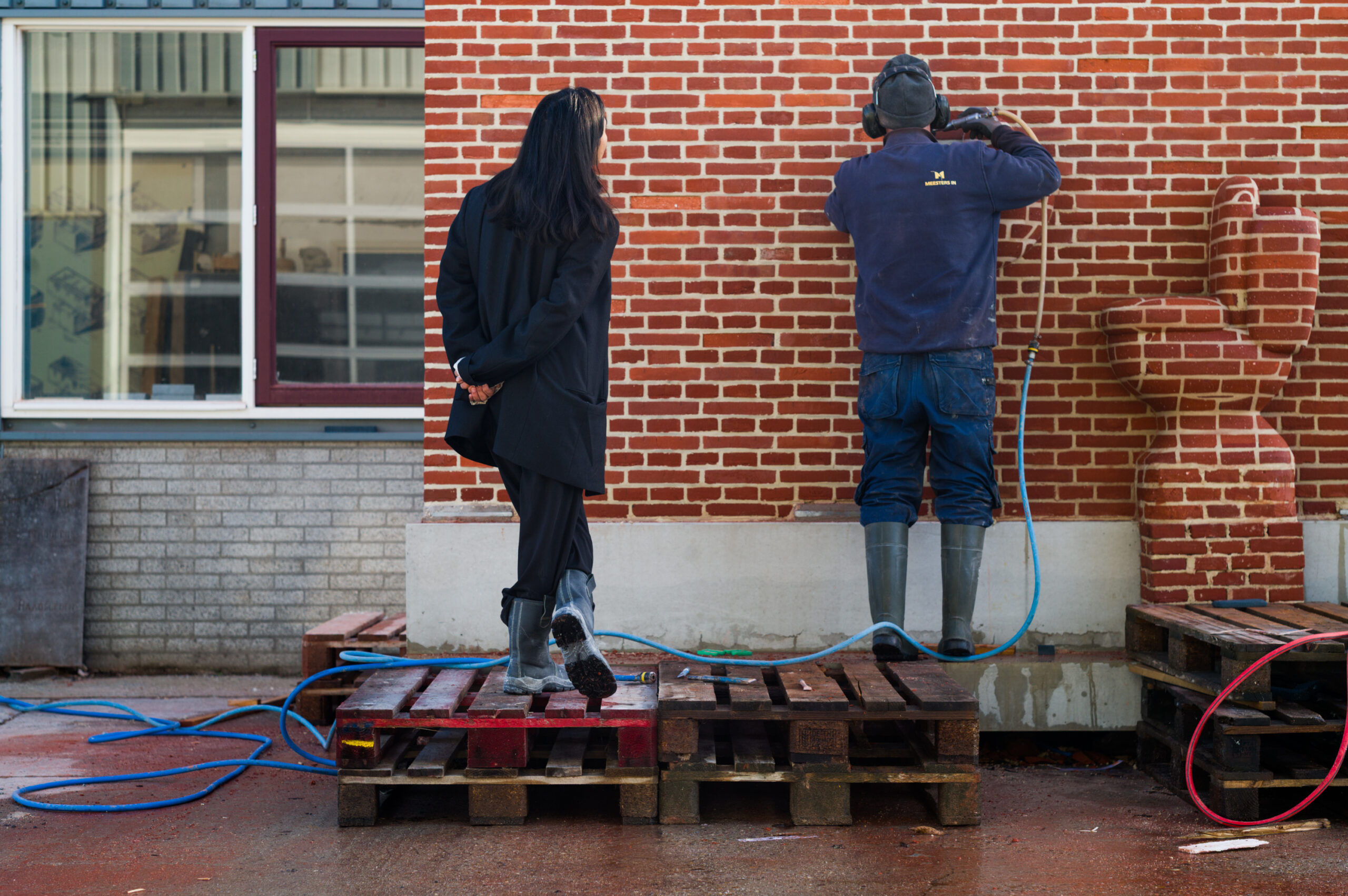 Op de Coolsingel in Rotterdam staat een badkamer. Of beter gezegd: de afdruk van een badkamer in een muur van rode baksteen. Het is een kunstwerk dat aandacht vraagt voor huiselijk geweld en femicide, bedacht door beeldend kunstenaar Narges Mohammadi (1993). “De badkamer is voor veel vrouwen de enige plek in huis waar ze zich een beetje veilig voelen. De deur kan op slot.” Interview door Harmen van Dijk. In opdracht van Trouw.